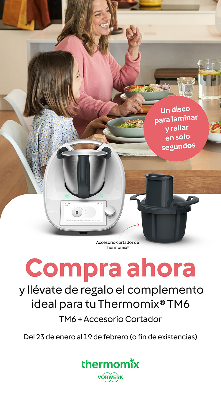 Desde el 23 de Enero al 19 de Febrero, adquiera su Thermomix TM6 y recibirá de regalo el accesorio cortador, con que podrá realizar sus recetas de una forma mas fácil y rápida.