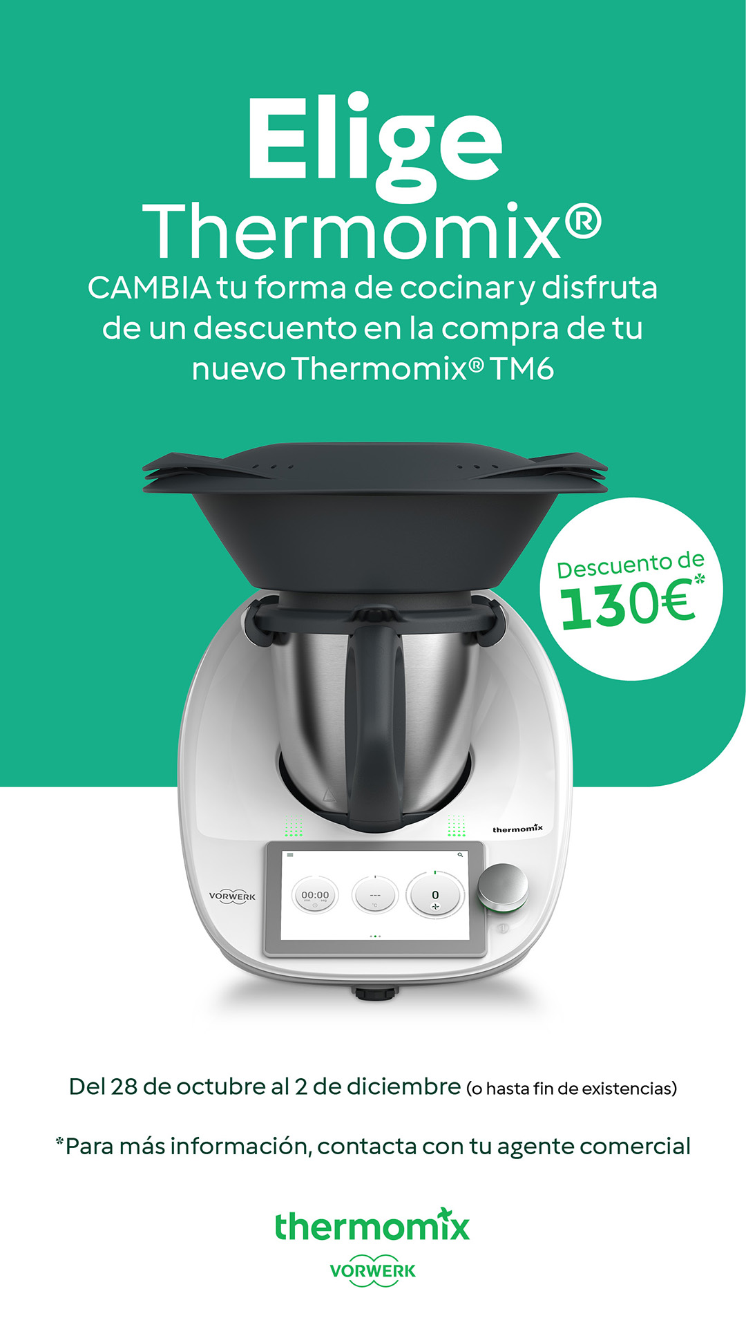 - Si no dispone de algún modelo anterior, es el momento de empezar a disfrutar de su Thermomix TM6, con un descuento directo de 130,00€